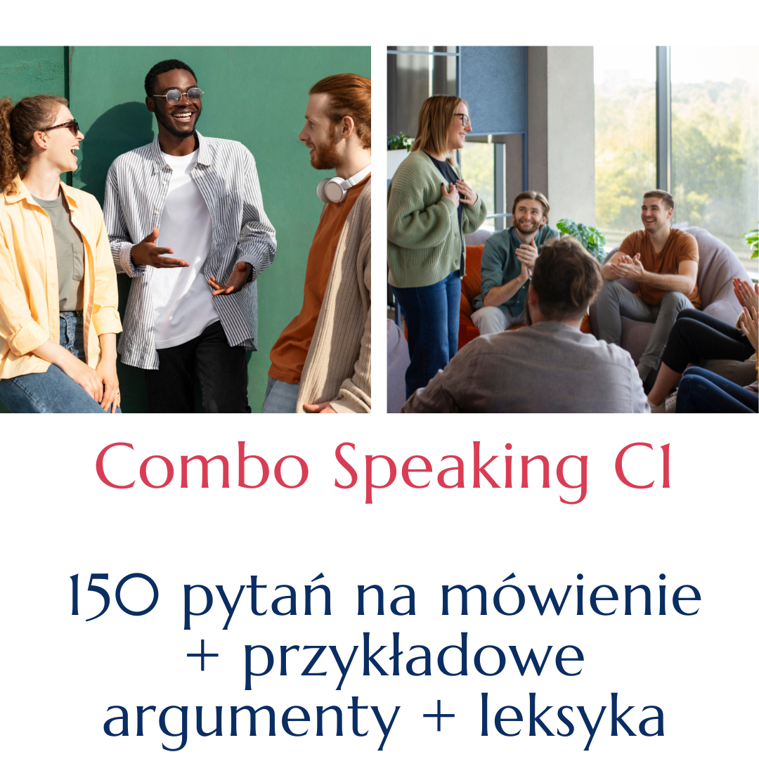 Combo Speaking C1! to zestaw 150 pytań wraz z zagadnieniami do poruszenia oraz zwrotami do użycia.