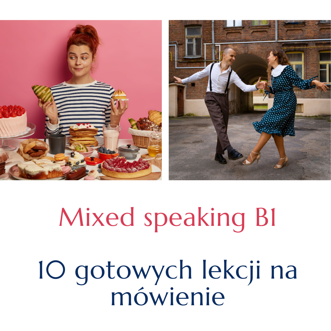 Mixed speaking B1 to zestaw 10 gotowych lekcji na mówienie dla starszych nastolatków (szkoła średnia) i dorosłych. Materiał przyda Ci się m.in. jeśli prowadzisz konwersacje lub chcesz urozmaicić zajęcia prowadzone w oparciu o podręcznik.