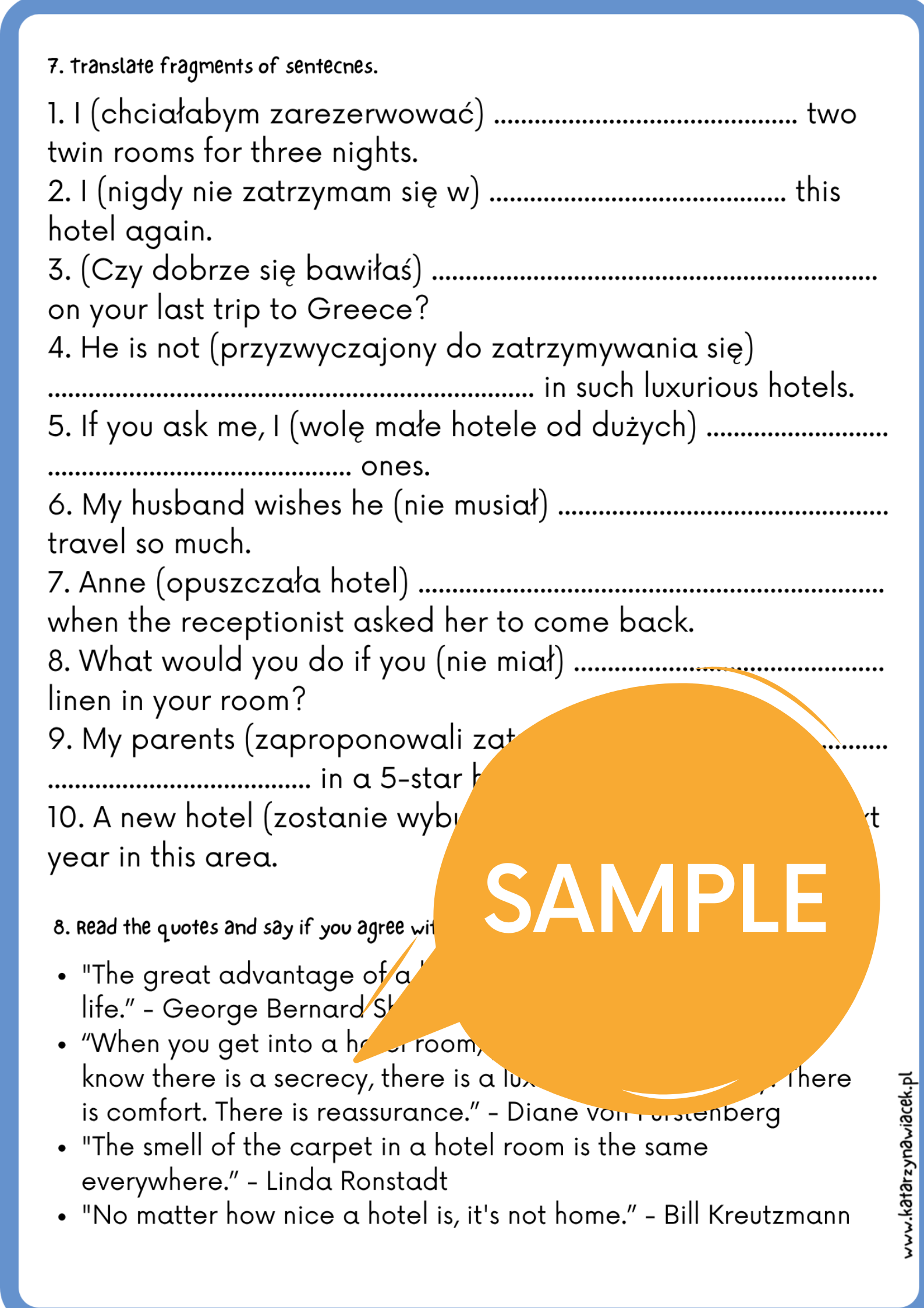 – zadanie na struktury (tłumaczenia fragmentów zdań lub gramatykalizacja)