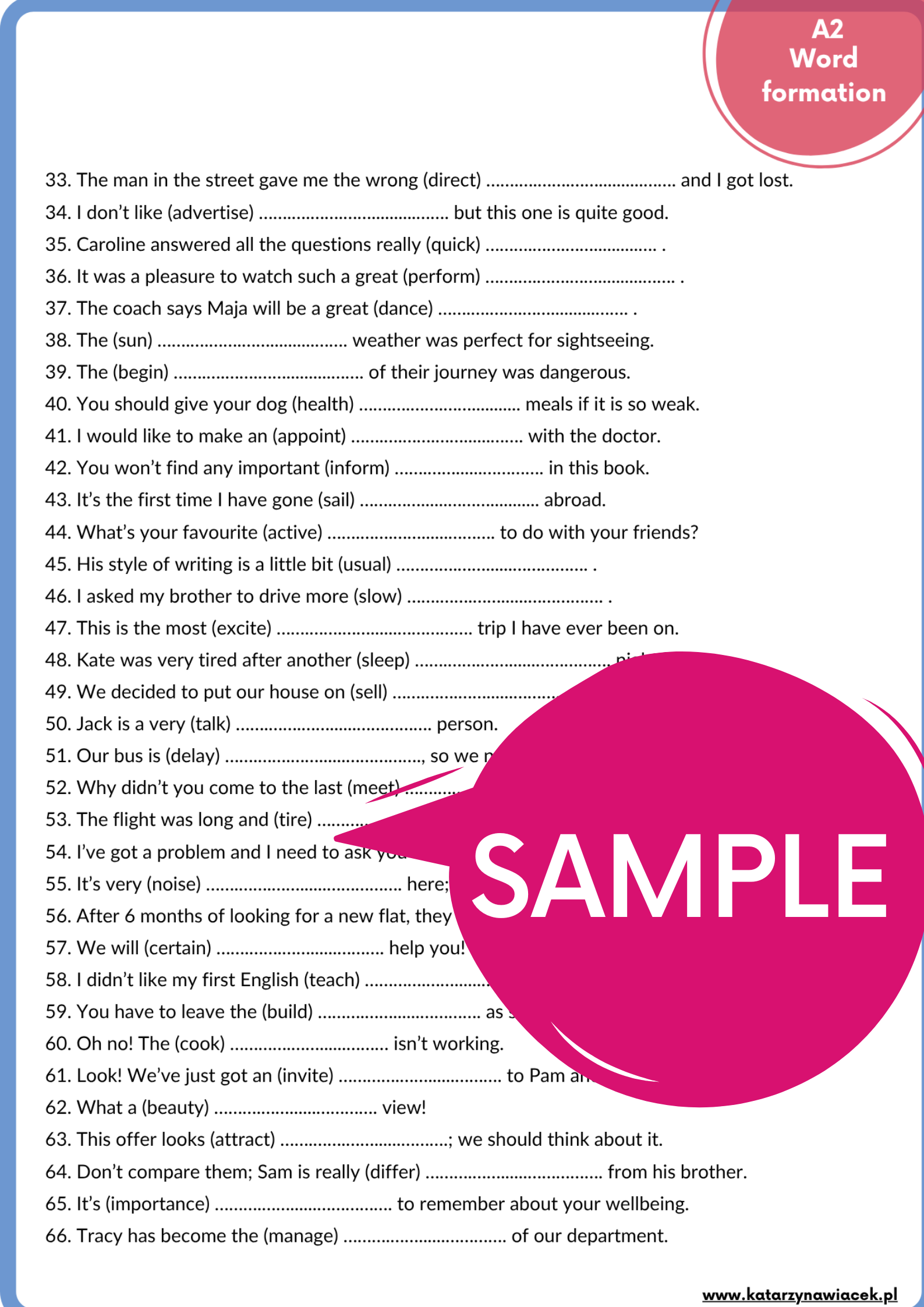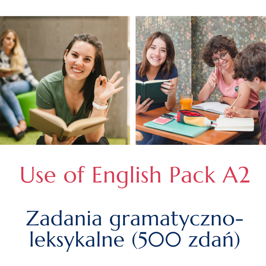 Use & English Pack A2 to zestaw 500 zdań ćwiczących struktury gramatyczno-leksykalne. Znajdziesz tu zadania na tworzenie wyrazów, gramatykalizację, częściowe tłumaczenia, transformacje i uzupełnianie luk. Materiał przyda Ci się, jeśli przygotowujesz uczniów do egzaminów (E8, KET) lub do egzaminów na wyższych poziomach, ale chcesz wprowadzić ćwiczenia egzaminacyjne już wcześniej.